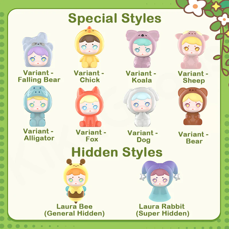 4. The production ratio of general hidden mini-figure (Laura Bee) is 1/216, and the production ratio of super hidden mini-figure (Laura Rabbit) is 1/432.
