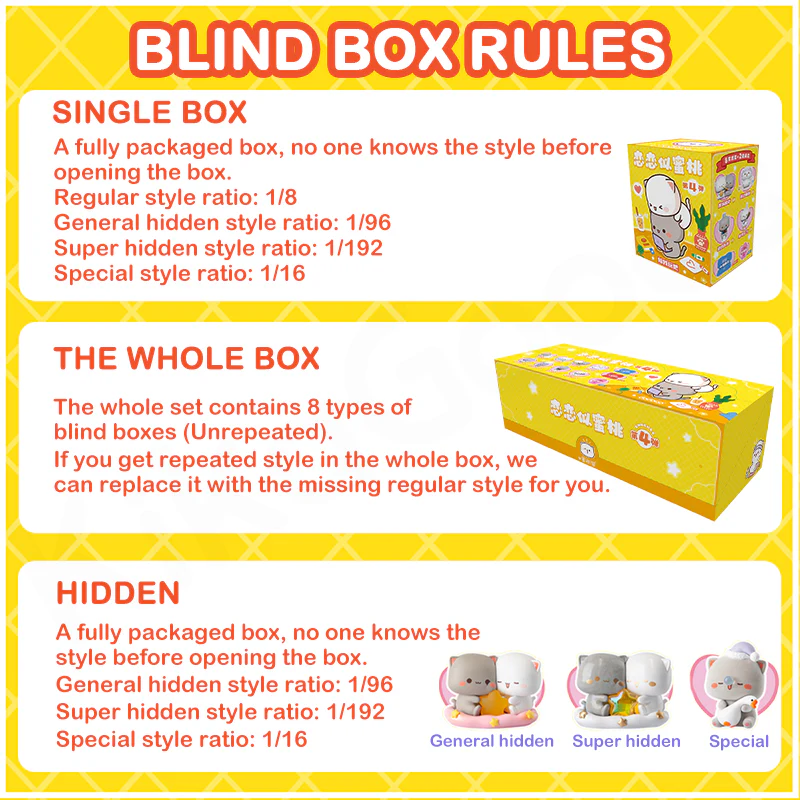 - For the same blind box product across multiple orders, we cannot guarantee there will be no duplicates.