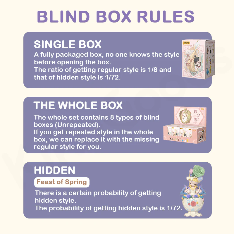 - For the same blind box product across multiple orders, we cannot guarantee there will be no duplicates.